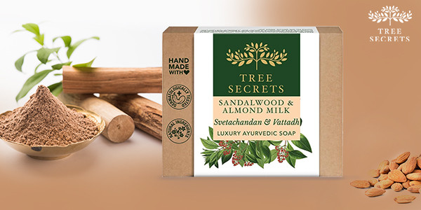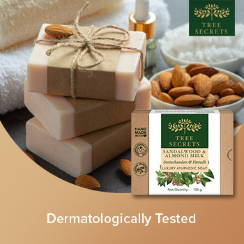 Tree Secrets Luxury Ayurvedic Soap - Sandalwood & Almond Milk smells wonderful and provides ample moisture to the skin. The Tree Secrets Luxury Ayurvedic Soaps are perfect to use in the morning because they are made from natural oils and aromas. These Ayurvedic soaps assist in moisturising the skin and maintain its radiance for hours. They are entirely handmade soaps with a wonderful scent that lingers.