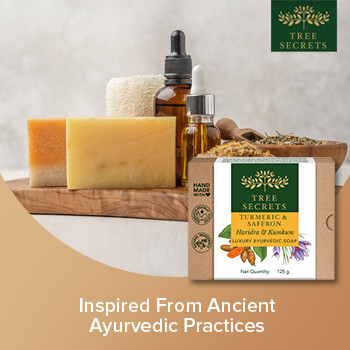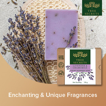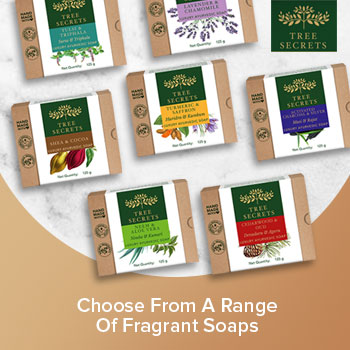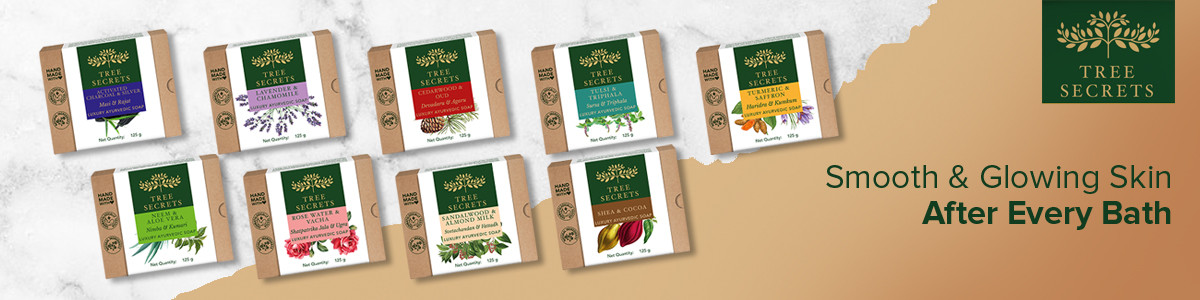 The Tree Secrets Ayurvedic Soaps come in various fragrances and flavours from turmeric and saffron to lavender and chamomile, cedarwood and oudh and so much more.