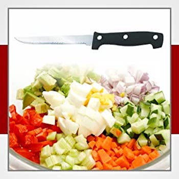 It is a sturdy all-purpose knife. It can be used for most types of chopping, dicing, mincing, and slicing. The longer blade makes fine cutting easy.