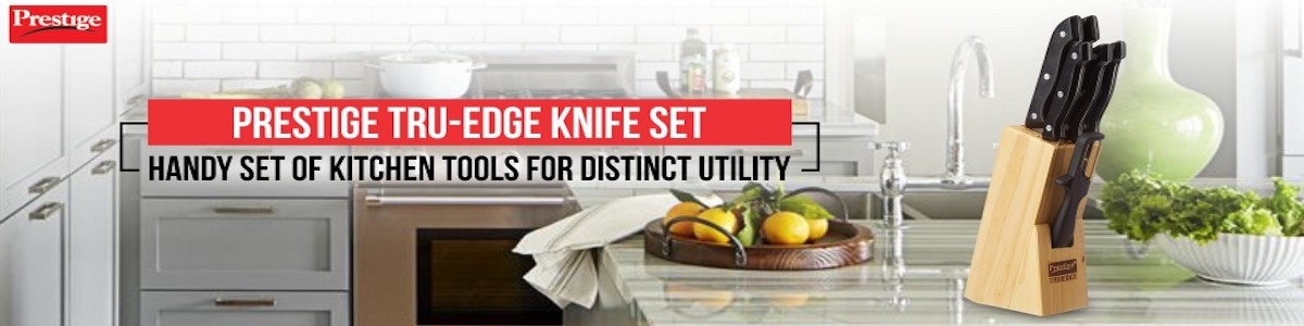 Prestige Truedge Knives come with high-quality sharpening that lasts longer. They are made of the right blend of materials to give you a unique experience during use. A single piece of Stainless Steel with riveted handles offer better grip & doesn’t slip. They are much easier to maintain than wooden handles. They do not absorb micro-organisms and are easy to clean. This set of knives comes with a wooden block to organize them properly and safely.