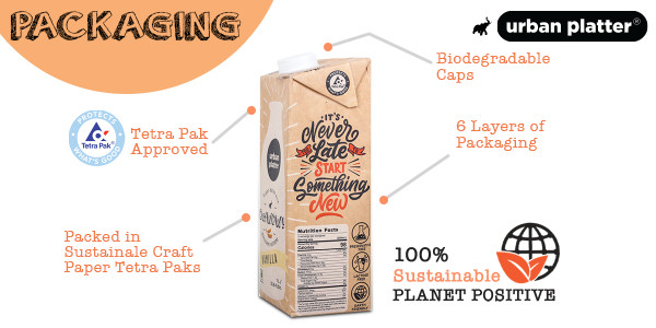 Packaged in Sustainable Craft Paper Tetrapaks and 100% Biodegradable Caps.