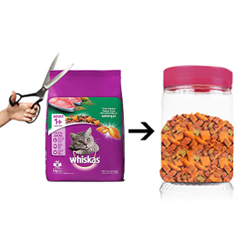 - Whiskas dry food must be stored at room temperature in an air-tight container, away from sunlight.