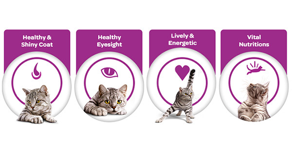 Wholegrain Cereals (Corn, Rice, Wheat) | Corn Gluten Meal | Poultry & Poultry By-products | Soy Bean Products (Full-fat Soy Bean, Soy Bean Meal) | Palm Stearin | Tuna Fish | Wheat Flour | Minerals | Iodised Salt | Vitamins | Taurine | Soy Oil | Methionine | Food Colouring |Preservatives | Flavour.