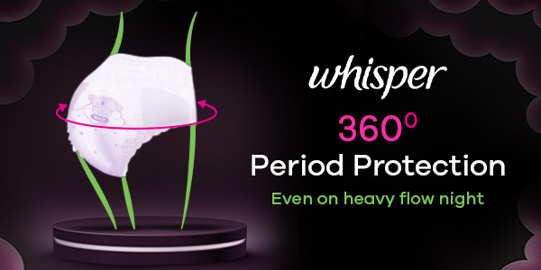 Whisper Bindazzz Nights Period panty provides Full back coverage so you don’t have to worry about stains even on heavy flow nights.