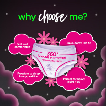 Whisper Bindazzz Nights Period Panty provides soft, comfortable period protection with a panty-like fit so you can sleep in any position you want.