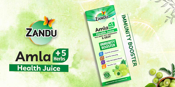 Zandu Amla + 5 Herbs Health Juice is an Ayurvedic Health Juice. It has the goodness of not only Amla but also 5 added herbs like Giloy, Ashwagandha, Tulsi, Yasti & Shigru. Zandu Amla + 5 Herbs Health Juice when taken regularly as per the dosage & directions helps improve immunity, strengthen bones. It is also good for hair & is a powerful antioxidant. Zandu Amla + 5 Herbs Health Juice is also good in taste, free from synthetic colours & flavours, has no added sugar