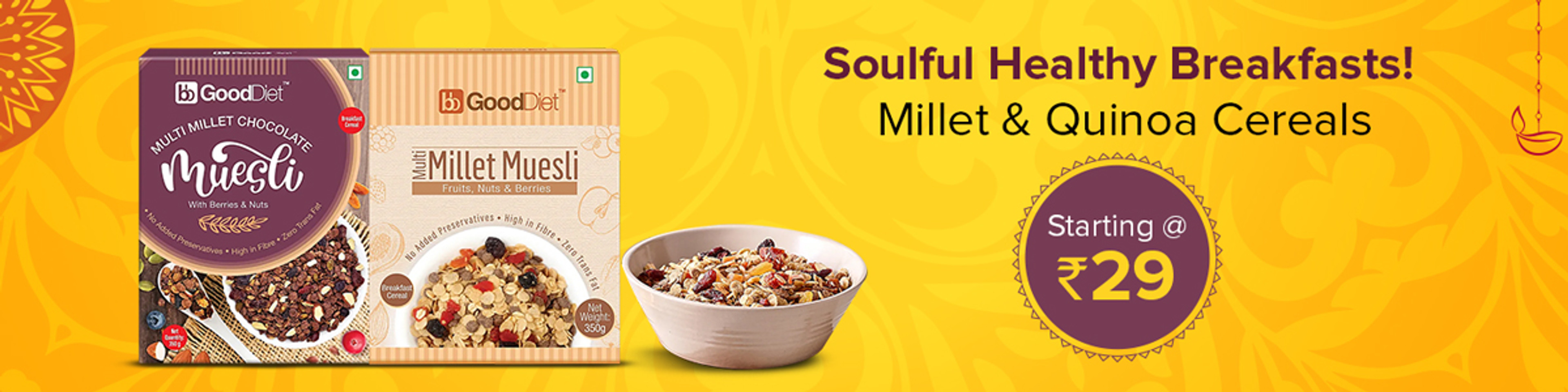 Traditionally, breakfast in India was synonymous with rich parathas, pohas or idlis but with life getting increasingly fast-paced it has become difficult to keep up with this trend. However, breakfast is the most important meal of the day and you have to have something nutritious to power you on throughout the day. Now, what could be more convenient and nutritious than cereals and muesli? Cereals, muesli and oats are not only quick breakfast alternatives but, are low-fat and nutrient-rich foods and have many of the essential minerals and vitamins in them like Iron, folate, B vitamins and zinc. Many weight watchers and fitness enthusiasts swear by oats nutrition and have included oats in their diet. There are different flavours and varieties of oats and all of them can be found on bigbasket. From whole-grain rolled oats and steel cut oats to masala oats in varied flavours like classic masala, peppy tomato and veggie twist, bigbasket has them all. The ready to eat cornflakes are not only enjoyed by adults but even kids love them and with so many of varieties available, you will never get bored of eating them. bigbasket offers a huge array of cornflakes and muesli to choose from, so now you can try out new flavours and variety of cornflakes and muesli every single day. Some varieties of oats, cornflakes, granola and muesli on bigbasket include: • Orgran Multigrain breakfast with Quinoa • Quaker oats, • Saffola masala oats • Muesli with crunchy fruit and nut • Nes Multigrain breakfast cereal • Kellogs crunchy granola with almonds and cranberries • Kellogs cornflakes – chocos and Kellogs wheat flakes Another way of having granola is the granola bars that are packed with nutrition and make a great snack for kids and adults. Moreover, you can easily buy granola from bigbasket that offers a varieties such as Nature valley’s crunchy granola bars with oats and berries, for one. With such an amazing variety of ready-to-eat breakfast items, you have no reason to skip breakfast again. Get online and order cereals, oats or muesli from bigbasket and have guaranteed next day delivery so you can have a quick and healthy breakfast and a powerful start to a wonderful day.
