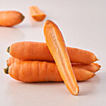 A popular sweet-tasting root vegetable, carrots are narrow and cone-shaped. They have thick, fleshy, deeply coloured roots which grow underground and feathery green leaves that emerge above the ground. While these greens are fresh-tasting and slightly bitter, the carrot roots are crunchy textured with a sweet and minty aromatic taste. Fresho brings you the flavour and richness of the finest bright orange, crispy, and juicy carrots. Known for their crisp texture and earthy sweetness, Ooty carrots are a staple in South Indian cuisine, gracing dishes from hearty stews to crunchy salads. Cultivated with care in the Nilgiris district of Tamil Nadu, these carrots are prized for their freshness and nutritional value.