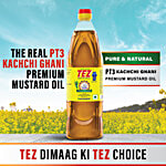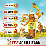 TEZ, Pure & Natural Premium Mustard Oil is one step ahead of all other Kachchi Ghani oils, as it follows a unique proprietary PT3 Kachchi Ghani process of Time, Temperature and Technique, that helps transfer Naturomers (inherent natural micronutrients) from seed to oil, which gives you natural pungency & extra zing to your healthy and tasty food. Khao, Jiyo, Tez Raho!