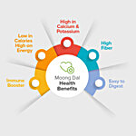 Moong Dal is a healthy pulse that has high fiber content and a negligible amount of cholesterol and fats. Moong Dal is full of iron, calcium and protein. Along with these nutrients, a bowl of Moong Dal also contains dietary fibers, sodium and all the other nutrients that are required for your body.