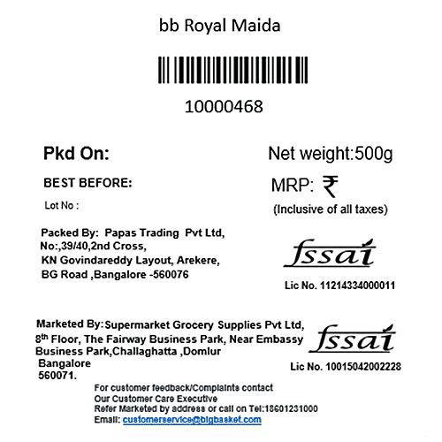 bb Royal Refined Wheat Flour/Maida, 500 g Pouch