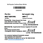 Manufactured by : Bangalore M.M Marketing #572, 1st, 2nd, 3rd Floor, 32nd 'D' Cross, 11th Main, Wth Block Jayanagar, Bangalore - 560011 Fssai Lic No11217334000038 | Bangalore SRI Gayatri Trading Company #37, 2nd Floor, Raghuvanahalli, Kanakapura Road, Bangalore - 560062 Fssai Lic No11216302000385 | Kolkata MARK COMMODITIES 80 DR SURESH SARKAR ROAD KOLKATA-700014 Fssai Lic No12816019000954 | Chennai M.M Marketing (Chennai) No. 7/1 2nd floor, 1st Main, Off 100ft Road, Domlur 2nd Stage, Bangalore - 560071 Fssai Lic No10015042002228 | Patna M/S ASG VISION B-295, MITRA MONDAL COLONY , SAKET VIHAR , PATNA - 800002 Fssai Lic No10416000000798 | Ahmedabad Shree GaneshDry Fruits , 132/4, Behind Of water tank, Walhekarwadi, Chinchwad, Pune-411033 Fssai Lic No11511037008060 | Mumbai UNISHA ENTERPRISES PVT LTD H-33 APMC Market - I, Phase - IIVashi Turbhe RoadMasala MarketVashiNavi Mumbai Fssai Lic No11517017000043 | Pune SHREE GANESH DRYFRUITS Sr. No. 1132/4 near Watar Tank Gurudwara Walhekarwadi Chinchwad, 411033 Fssai Lic No11514037011392 | Delhi R GOPAL IMPEX PVT. LTD. 56/2/2 & 56/9/2/2/2, VILLAGE WAJIDPUR, SABOLI DISTT. , SONEPAT, HARYANA-131029 Fssai Lic No10817020000104 | Vijayawada-Guntur OMKARESWARA AGENCIES (VJA) , 2/14/190, syamalanagar, 1stline, guntur-5220006 Fssai Lic No10117030000126