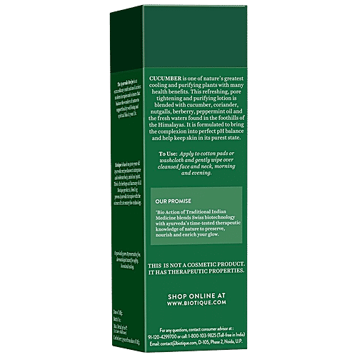 BIOTIQUE Pore Tightening Refreshing Toner - Cucumber, With Himalayans Water, For Normal To Oily Skin, 120 ml Carton