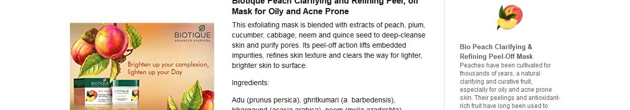 Biotique Bio Peach Clarifying & Refining Peel off Mask is a mix together of Plum, Peach, Cucumber, Cabbage, Neem seeds, and Quince seeds to powerfully cleanse your skin and clean the pores. The Peel off Mask lifts away extremely rooted contamination and softens your skin to nourish skin and reveal brightness. Appropriate for use on all skin types, the Peach descriptive & cleansing Peel off Mask can be used by men and women who suffer from acne.