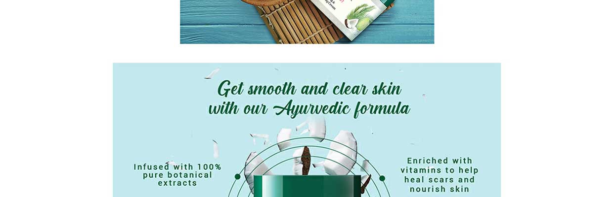 Nariyal (Coco nucefera water), Dudhal (Taraxcum officinale), Manjistha (Rubia Cord folia), Nimba kamla (Citrus limunum), Badam tail (Prunus amygdalus), Cream base Q.S.