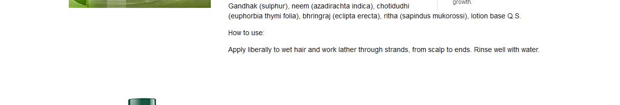 Gandhak (Sulphur), Neem (Azadirachta Indica), Chotidudhi (Euphorbia Thymi Folia), Bhringraj (Eclipta Erecta), Ritha (Sapindus Mukorossi), Lotion Base Q.S.
