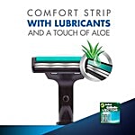 Twin blades shave you twice with each stroke eliminating irritating repeat strokes for a faster shave than with a double edge blade. The lubricating strip activates when wet, reducing pulling and skin irritation for a smoother more comfortable shave.