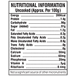 Nutrition_per: 100g Serving_Size: 100g Energy: 399Kcal Protein: 1.4g Carbohydrate: 96g Sugar (Added): 91g Fat: 1.2g Saturated Fatty Acids: 0.2g Poly Unsaturated Fatty Acids: 0.2g Mono Unsaturated Fatty Acids: 0.8g Trans Fatty Acids: 0g Cholesterol: 0g Calcium: 50mg Sodium: 60mg Phosphorous: 20mg Vitamin A: 5µg Riboflavin: 0.4mg