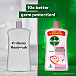 Be 100% sure to protect your skin from 100 illness-causing germs and bacteria. Use Dettol's Skincare Germ Protection Handwash Liquid Soap pH balanced formula every day and keep your hands hygienically clean and refreshed. This hand wash provides soft and rich lather, leaving behind clean hands and fragrance. The trusted germ-protection modus operandi acts like a barrier between your hands and a wide range of unseen germs. The soap-free formula with glycerin makes sure to keep your skin moisturised, while the plant derived cleansers help ensure thorough cleaning.