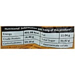Nutrition per gram/ml: 100g Energy: 401.08 kcal Fat: 16.46g Crude Protein: 11.04 g Carbohydrates: 59.16g Total Sugar: 11.92 g