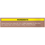 Whole Wheat Flour (Atta), Edible Vegetable Oil (Rice Bran Oil), Iodised Salt, Cumin Powder, Turmeric Powder