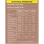 Nutrition per gram/ml: 100g Serving Size: 1 Piece (18 g) Energy (kcal): 475.51 Protein (g): 10.25 Carbohydrate (g): 65.59 Total Sugar (g): 6.57 Dietary fibre (g): 12.05 Total fat (g): 19.13 Saturated fat (g): 4.85 Sodium (mg): 718