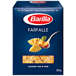Barilla Farfalle is a creative and beautiful shape inspired by butterflies, loved by kids and adults alike. The butterfly shape gives Farfalle a unique texture, both smoot and toothsome at the same time. Try Farfalle with light vegetable sauces or in pasta salads and enjoy an authentic Italian meal. Made with 100% high-quality durum wheat semolina, this product is GMO-free and no maida is used. It is an excellent source of energy and naturally low in fat with a low glycemic index that keeps you fuller for longer.