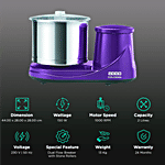 USHA Colossal 2 Litres 2 Stones Wet Grinder with Coconut Scrapper & Atta Kneader (Sturdy High Torque Motor, Magenta), 1 Unit