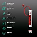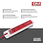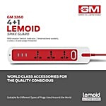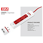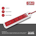 GM Lemoid 2.1 Amps 3 Sockets Surge Protector with Individual Switch (2 Meters, LED indicator, 3258, White & Red), 1 Unit