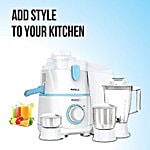HAVELLS Rigo 500 Watt 3 Jars Juicer Mixer Grinder (Stainless Steel Blade, White Blue), 1 Unit