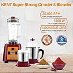 KENT Super Strong 1200 Watt 3 Jars Mixer Grinder Blender (30000 RPM, High Speed Operation, Red), 1 Unit