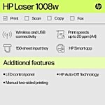 HP Laser 1008W Single Function Wi-Fi Monochrome Laser Printer with LED Display (Smart App, White), 1 Unit