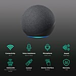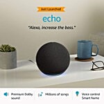 amazon Echo (4th Gen) with Built-in Alexa Smart Wi-Fi Speaker (Controls Smart Devices, Black), 1 Unit