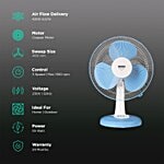 No Question asked USHA Mist Air Flo 400mm 3 Blade Inverter Technology Table Fan (Durable Design, Light Blue)