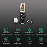 Nutrismart NS Bullet 500 Watt 2 Jars Mixer Grinder Blender (22000 RPM, Copper Winding, Black), 1 Unit