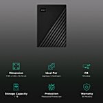 WD My Passport 1TB USB (3.2) Portable Hard Disk Drive (Slim Durable Design, Black), 1 Unit