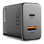 noise Power 30W Type A & Type C 2-Port Fast Charger (Adapter Only, GaN Technology, Black), 1 Unit