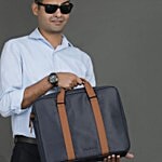 No Question asked hoi polloi BEESLY Nylon, Polyester, PU Laptop Messenger Bag for 16 Inch Laptop (13.23 L, Water Resistant, Starry Night Blue & Tan)
