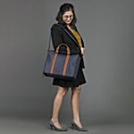 hoi polloi BEESLY Nylon, Polyester, PU Laptop Messenger Bag for 16 Inch Laptop (13.23 L, Water Resistant, Starry Night Blue & Tan), 1 Unit