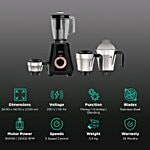 HAVELLS Hydro Plus 1000 Watt 4 Jars Mixer Grinder (22000 RPM, Ball Bearing Motor, Black), 1 Unit