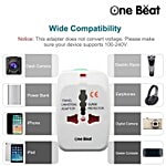 One Beat Travel Adapter (Built In Safety Shutters, OB201000, White), 1 Unit