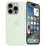 Apple Soft Silicone Back Cover for Apple iPhone 15 Pro Max (Supports Wireless Charging, Soft Mint), 1 Unit
