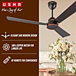USHA AeroEdge 5 Star 1200mm 3 Blade BLDC Motor Ceiling Fan with Remote (Whisper Quiet Technology, Smoke Brown), 1 Unit