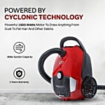 No Question asked Croma 1600W Dry Vacuum Cleaner with Cyclonic Technology (Reusable Dust Bag, Red)