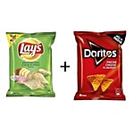 No Question askedbb Combo Lays Potato Chips - American Style Cream 52 Gm + Doritos Nacho Cheese 40 Gm