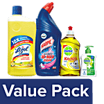 No Question askedbb Combo Harpic Cleaner 1L + Lizol Cleaner 975Ml + Dettol Dish Gel 400Ml + Handwash 200Ml