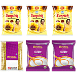 No Question askedbb Combo bb Royal Baskati Rice 5 kg + Sugar 2x1 kg + Sunrich Sunflower Oil 3x750 g