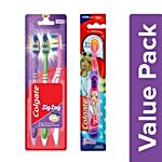 Colgate Toothbrush - Zigzag, Soft Bristles 2Pcs Buy 2 Get 1 Free + Toothbrush Barbie 1Pc, Combo 2 Items