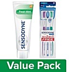 Sensodyne Sensitive Toothpaste Fresh Mint 130G+Sensitive Toothbrush 3pcs, Buy 2 Get 1 Free, Combo 2 Items