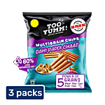 A chatpata twist to healthy snacking! Too Yumm! Multigrain Chips blend the tang of dahi papdi chaat with the Power of 5 Grains: Wheat, Rice, Corn, Gram, and Oats. Baked, not fried - with 60% less saturated fat, no palm oil & 100% rice bran oil.